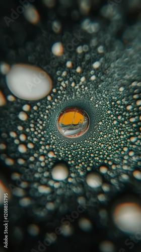 Abstract Oil Drops in Liquid Macro Photography Dark Background Closeup Texture Circle