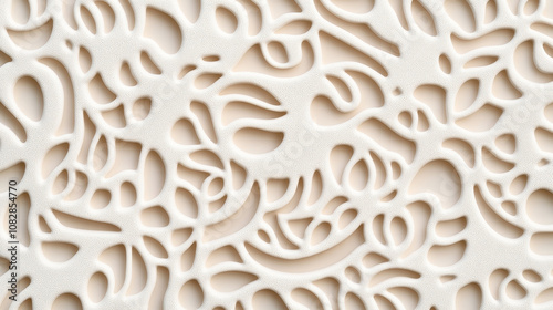 Abstract organic pattern with intricate cutout shapes on a beige textured background, featuring a three-dimensional appearance and soft lighting for visual depth.