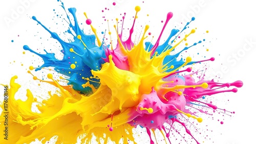 Abstract Paint Explosion - Blue Yellow Pink