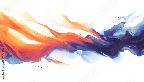 Abstract paint flow, orange and blue, white background