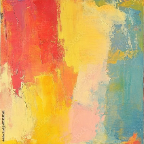 Abstract painting featuring vibrant brushstrokes of red yellow and blue creating a dynamic and textured visual experience capturing artistic expression