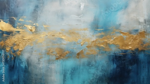 Abstract painting in grey and turquoise with gold accents, modern decoration, contemporary art