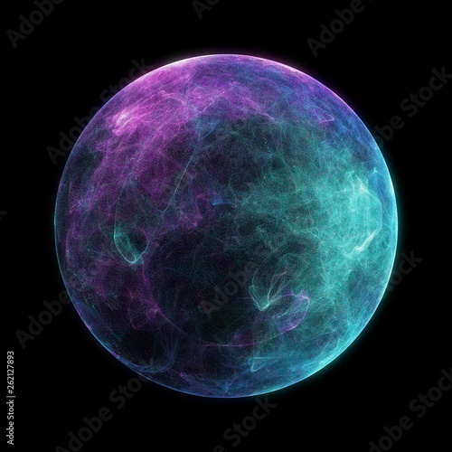 Abstract particle sphere, science background.Virtual flow big binary data visualization. Digital technology planet structure, Glows and particles. 3D render