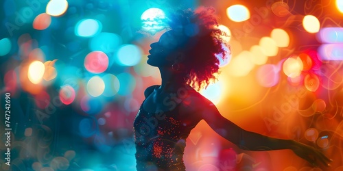Abstract photo of a woman dancing energetically in a nightclub setting. Concept Nightclub Dance, Energetic Movement, Abstract Photography