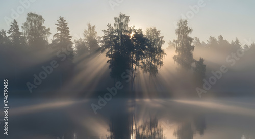 Abstract Photography of Misty Forest at Dawn with Calm Atmosphere