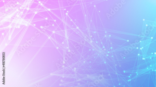 Abstract pink blue polygon tech network with connect technology background. Abstract dots and lines texture background. 3d rendering.