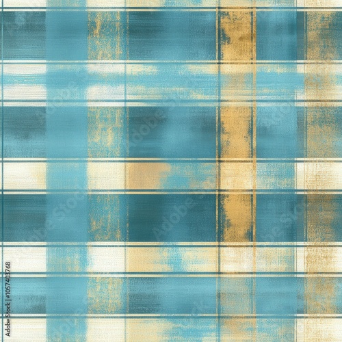 Abstract Plaid Pattern in Blue, White, and Gold Texture pattern ,seamless pattern, texture with copy space for background and textile design