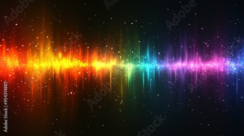 Abstract Rainbow Lights and Glittering Stars on Black Background