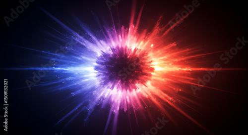 Abstract Red Blue Energy Burst Glowing Light Explosion Cosmic Star Background