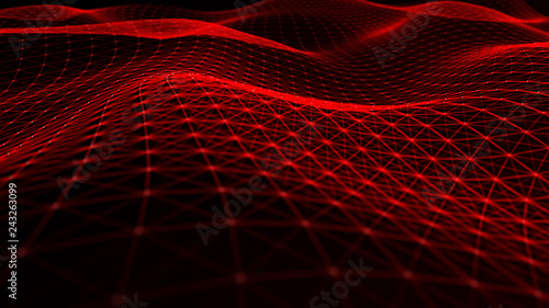 Abstract red polygonal space. Molecular structure and communication. Network connection structure. Big data digital background. 3d rendering.