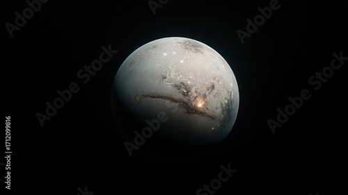 Abstract representation of a distant exoplanet with visible terrain and atmosphere rendered in
