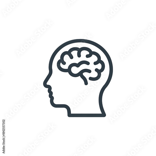 Abstract representation of a human brain inside a head silhouette symbolizing intelligence and cognition isolated on transparent background