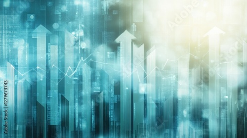 Abstract representation of growth and progress with upward arrows and data patterns in a digital space