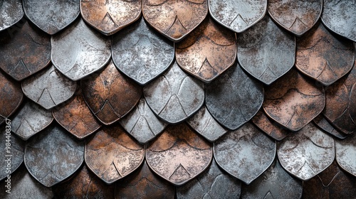 Abstract representation of snake scales with textured metallic pattern.
