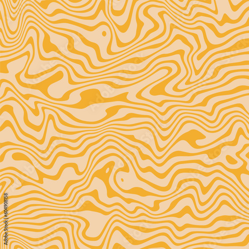 Abstract retro groovy background. Wavy swirl vector pattern. Vintage psychedelic social media post template. Trippy cover design, square poster in 60s-70s style. Pastel yellow liquid hippie texture