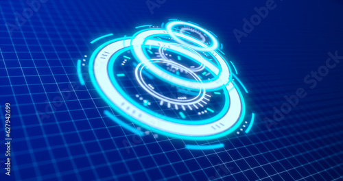 Abstract round blue ring of lines HUD elements circles energy futuristic scientific hi-tech digital abstract HUD background