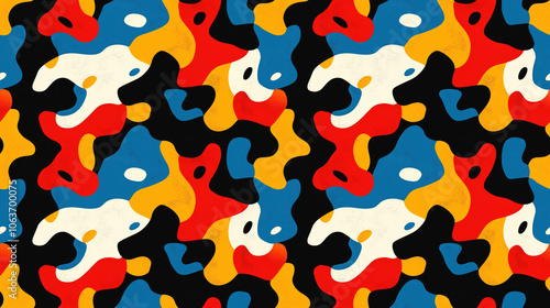 Abstract seamless pattern featuring irregular shapes and vibrant colors perfect for textile design and creative projects