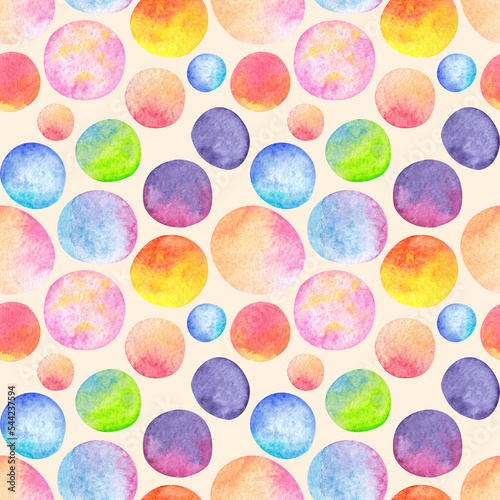 Abstract seamless pattern of colorful circles. Rainbow print for design. Wrapping paper, scrapbooking, children's party, cover, postcard, printing