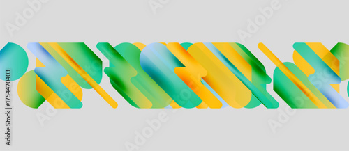 Abstract shapes overlap, creating vibrant color gradients. Yellows, greens, oranges blend smoothly. Minimalist design, modern aesthetic.