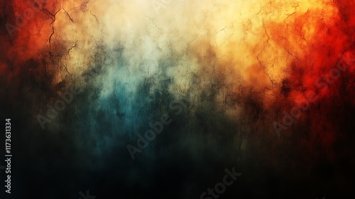 Abstract smoky background with fiery orange, teal, and dark colors.
