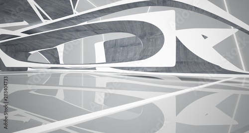 Abstract smooth concrete and white interior with neon lighting. 3D illustration and rendering.