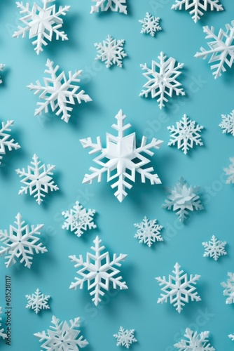 Abstract snowflake patterns made with minimalist Christmas decor in flat lay style AI generated illustration