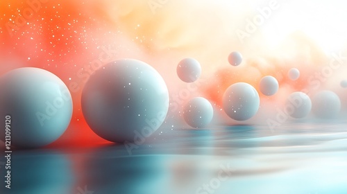 Abstract Sphere Serenity: Floating Orbs in a Dreamlike Landscape