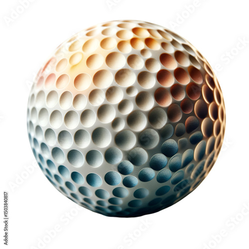 Abstract spherical object with textured surface and a pattern of depressions on black backdrop.
