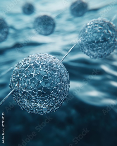 Abstract Spherical Structures Connected by Lines in a Blue Toned Science and Technology Concept