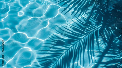 Abstract summer fresh background with pool water surface and palm leaf shadows
