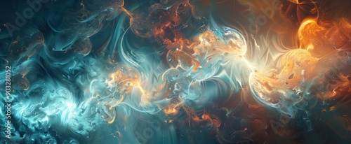 Abstract Swirling Blue and Orange Nebula