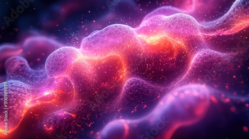 Abstract swirling cosmic nebula with vibrant pink, orange, and purple hues.