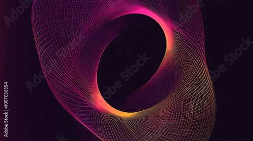 Abstract swirling pink and orange lines on a black background.