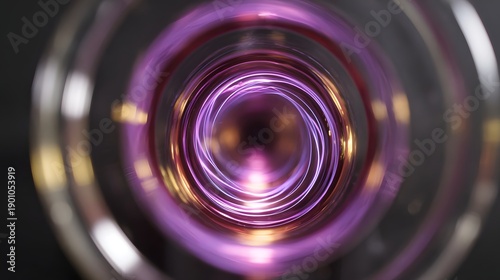 Abstract swirling vortex of purple and orange light within a transparent tube creating a dynamic and energetic visual