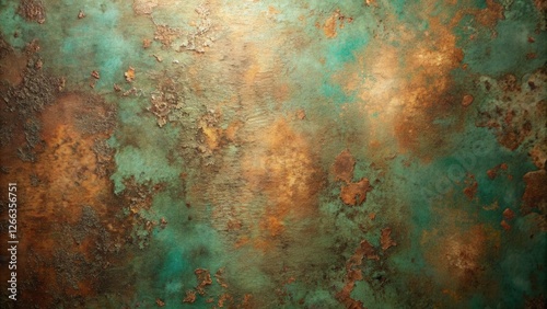 Abstract Teal and Copper Patina Texture A Rich, Aged Metallic Surface with Uneven Coloration and Flaking Detail