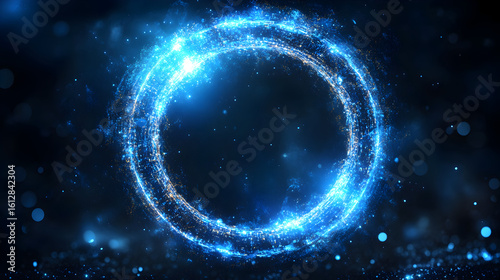 Abstract Tech Circle Design with Blue Glowing Lines – Dark Background for Website Header, Banner, or Futuristic Digital Layout