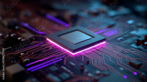 Abstract Technology Background Digital Circuit Board Microchip Processor Neon Purple Pink Glowing Lines Modern Futuristic High Tech Innovation Electronic Design