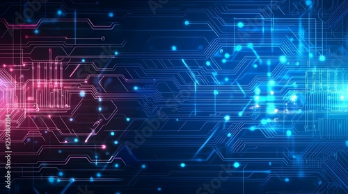 Abstract Technology Background with Glowing Pink and Blue Circuits