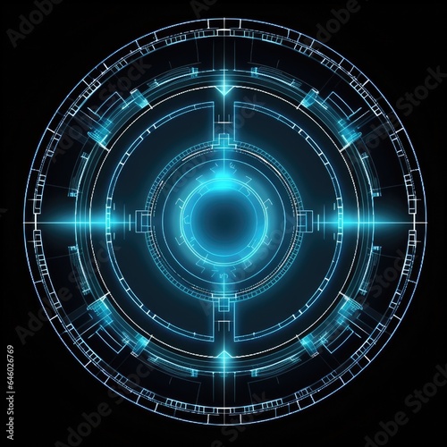 Abstract technology hud interface hologram elements neon lights, circle percent vitality innovation on hi tech future design. Generative AI