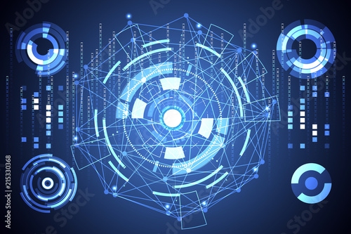 abstract technology ui futuristic concept hud interface hologram elements of digital data chart, communication, computing and circle percent vitality innovation on hi tech future design background
