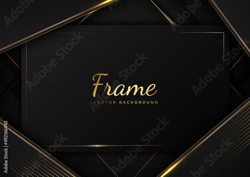 Abstract template black and grey geometric oblique with golden line layer on black background. Luxury style. Frame background.