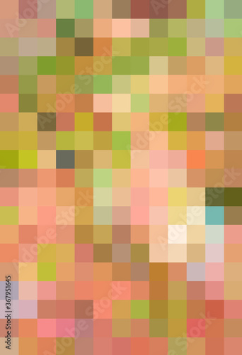 Abstract texture, color combination. Pixel squares in green turquoise orange yellow pink colors, shades and nuances. Suitable for backgrounds and printing. Fresh spring mood inspiration.