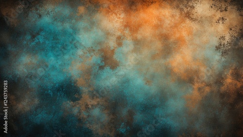 Abstract textured background with vintage hues of orange, teal, and brown for artistic and creative design projects.