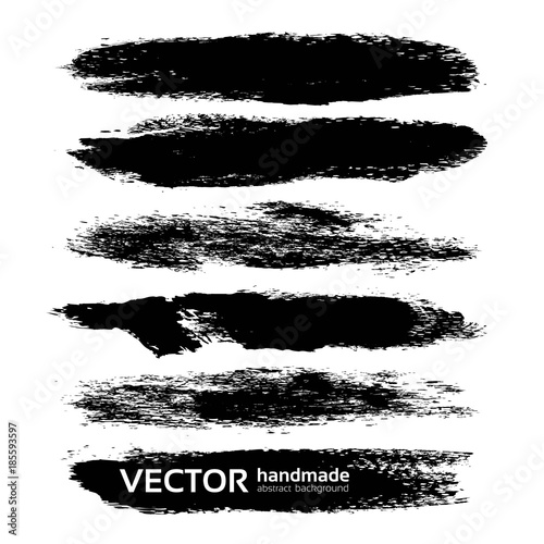 Abstract textured big long thick strokes and prints black paint isolated on a white background