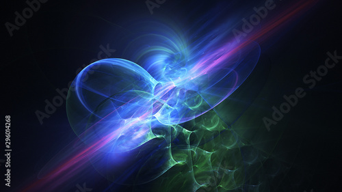 Abstract transparent blue and green crystal shapes. Fantasy light background. Digital fractal art. 3d rendering.