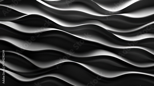 Abstract, undulating, wavy, 3D surface. Black and white, flowing, pattern