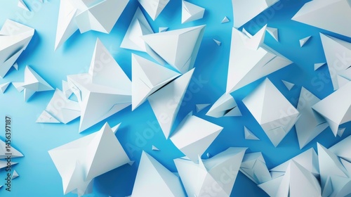 Abstract vibrant geometric shapes on surface of sky theme design express scene of seamless patterns style. Arranging geometry scenery in fractal pattern perfect for wallpaper and background. AIG51.