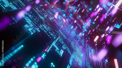 Abstract Visual Representation of Digital Data Flow With Vibrant Neon Colors Highlighting Technology in a Futuristic Setting