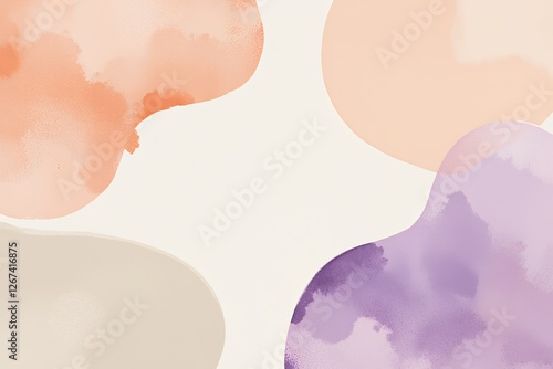 Abstract Watercolor Background Pastel Peach Lavender and Beige Organic Shapes