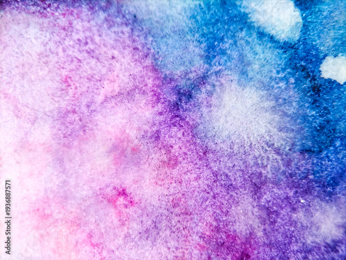Abstract watercolor painting features a gradient blending of vibrant colors, primarily pink, purple, and blue.